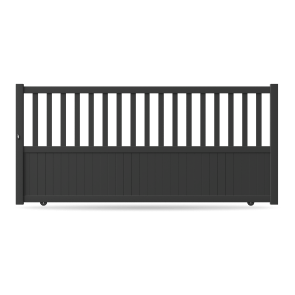 The Aluminum Sliding Driveway Gate is ideal where a swing gate would encroach on the driveway or road. The gate slides along a ground track or is cantilevered for maintenance-free operation. Features a powerful rack-and-pinion motor, remote control, safety sensors, and smartphone app control. The aluminum construction is lightweight yet rigid, requiring a smaller motor than steel alternatives. Available in widths from 3000mm to 8000mm.